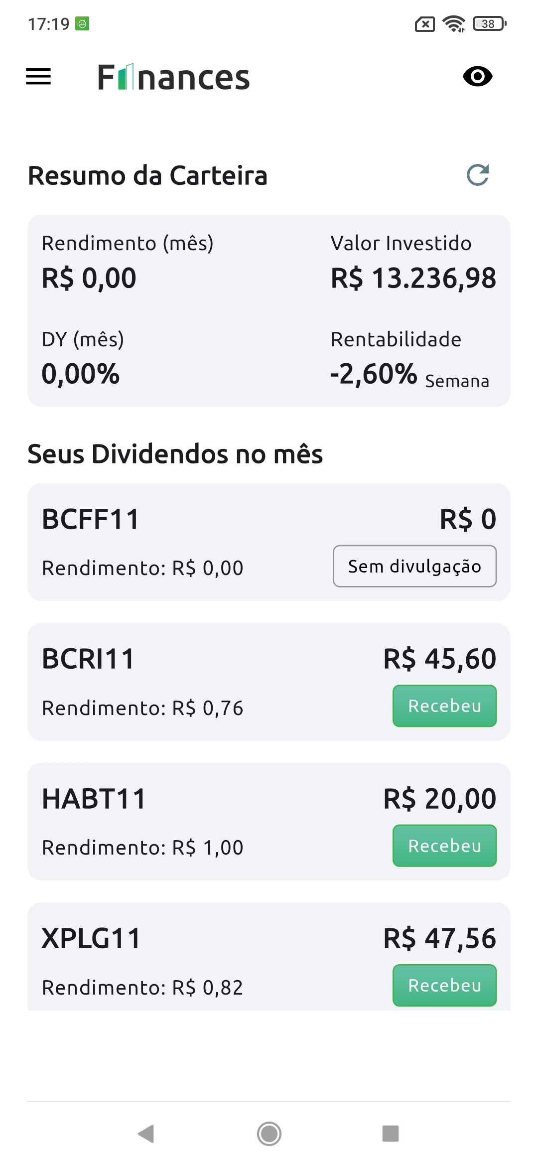 Acompanhe facilmente o rendimento dos seus FIIs em tempo real.